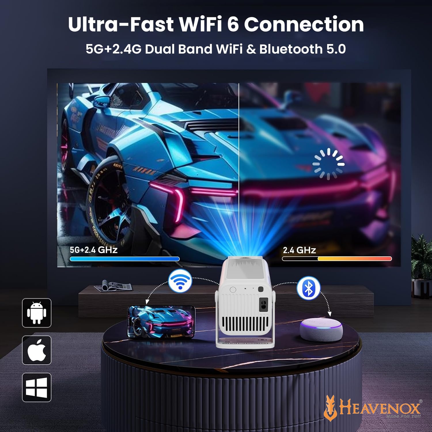 Native 1080P, Auto Focus, Auto 4D Keystone (±40° Degrees), 4K HDR Support, Android 13 TV OS, Dual Desktop, 4X High Brightness (Best in Segment), HDMI ARC+CEC Support, Auto Keystone, 5 Watt HiFi Speaker, 5.0 Bluetooth, Dual Band WiFi 6, 270° Rotatable and Ceiling MountableNative 1080P, Auto Focus, Auto 4D Keystone (±40° Degrees), 4K HDR Support, Android 13 TV OS, Dual Desktop, 4X High Brightness (Best in Segment), HDMI ARC+CEC Support, Auto Keystone, 5 Watt HiFi Speaker, 5.0 Bluetooth, Dual Band WiFi 6, 270° Rotatable and Ceiling Mountable |